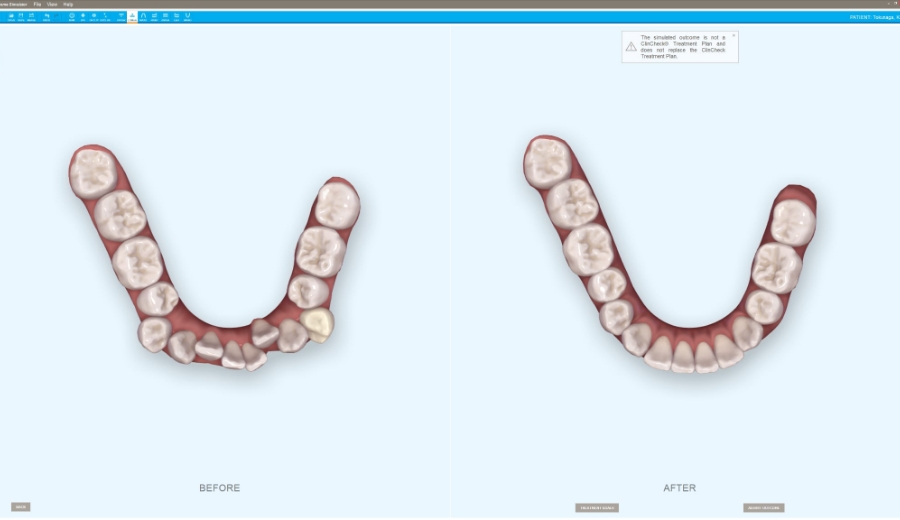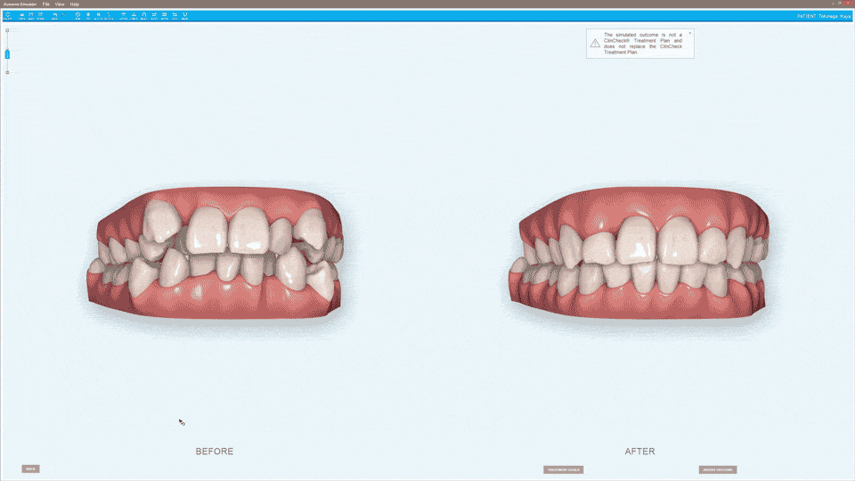 アウトカムシミュレーションでは、矯正治療後の歯並びを、治療前に確認することができます。